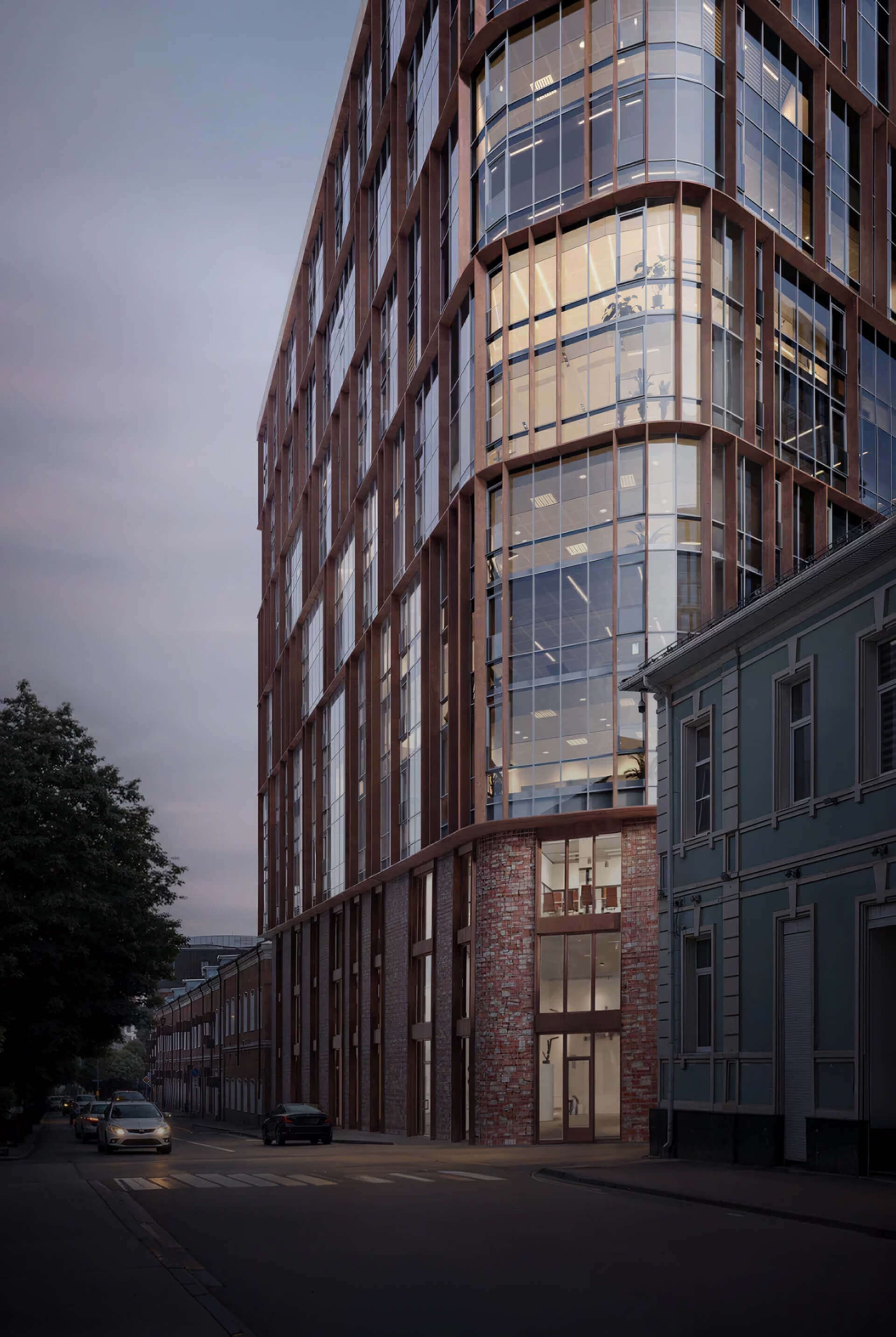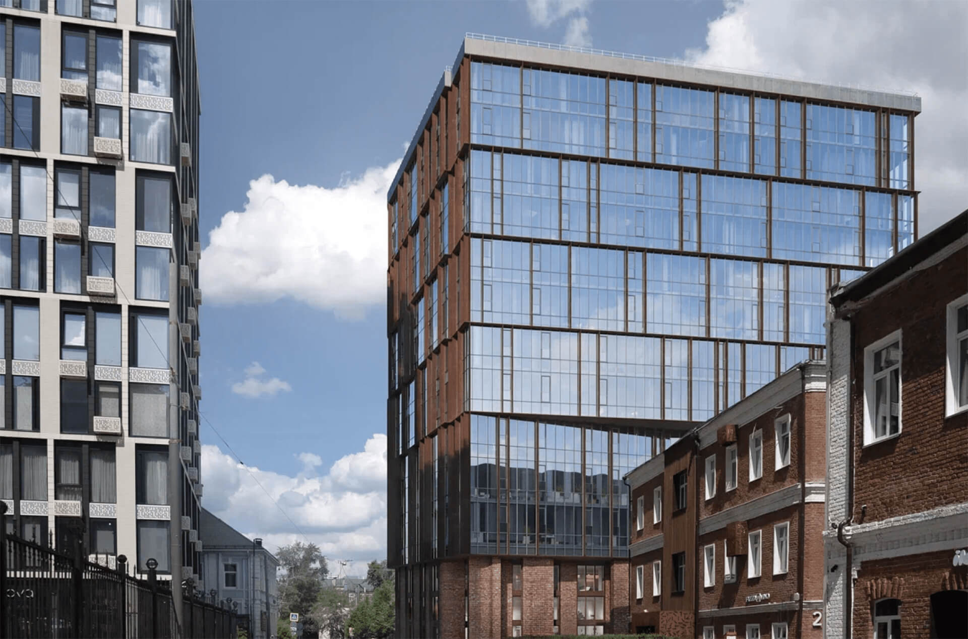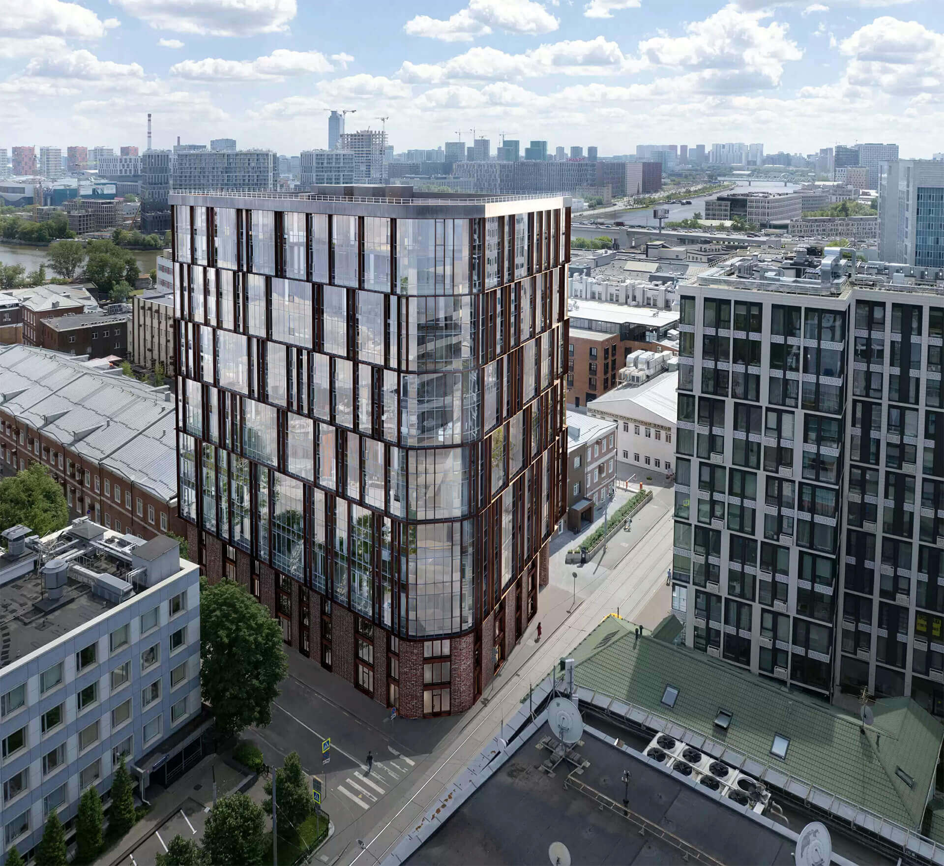 Бизнес-центр «Башня Рябов» — это новый landmark премиум-сегмента в деловой среде Москвы. Расположенный в шаговой доступности от метро Тульская, он сочетает современную офисную инфраструктуру с уважением к наследию лофт-квартала «Товарищество Рябовской Мануфактуры». Здание занимает 13 этажей, общая площадь около 20 000 м², арендная — до 16 000 м², с потолками до 3,7 м и панорамным остеклением, открывающим виды на исторический Даниловский монастырь. Архитектура, выполненная бюро «Функция», отражает связь с прошлым, а ортогональный фасад и материалы — кортен-сталь, кирпич и зеркала — создают современный контраст.